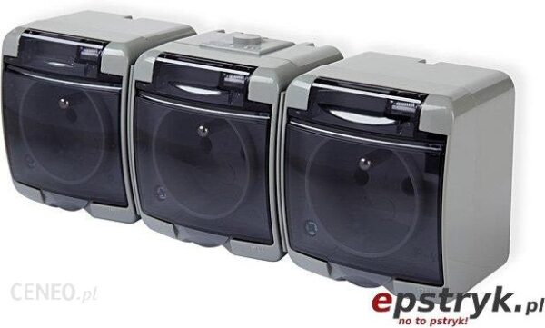 JUNIORGniazdo potrójne 3x2P+Z (klapka dymna) Popielaty 10GHE-3dp Produkty serii JUNIOR to zgrabna, ciekawa linia hermetyczna przeznaczona dla budownictwa przemysłowego oraz pomieszczeń gospodarczych: piwnic, garaży itp., a w szczególności dla pomieszczeń narażonych na działanie wilgoci. Wszystkie produkty posiadają stopień ochrony IP44 oraz wymagane certyfikaty i deklaracje zgodności pod względem bezpieczeństwa użytkowania.Gniazda wtyczkowe stałe, naścienne, rozbieralne, ze stykiem ochronnym, z zaciskami gwintowymi, potrójne.Stopień ochrony: IP 44Prąd znamionowy: 16ANapięcie znamionowe: 250V~Zgodność z normą: PN-IEC 60884-1:2006Przesłony torów prądowych…
