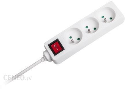 Przedłużacz stały z trzykrotnym gniazdem wtyczkowym 3x2p+Z z wyłącznikiem, 10AZdjęcia przedstawiają model w kolorze białym i mają charakter podglądowy